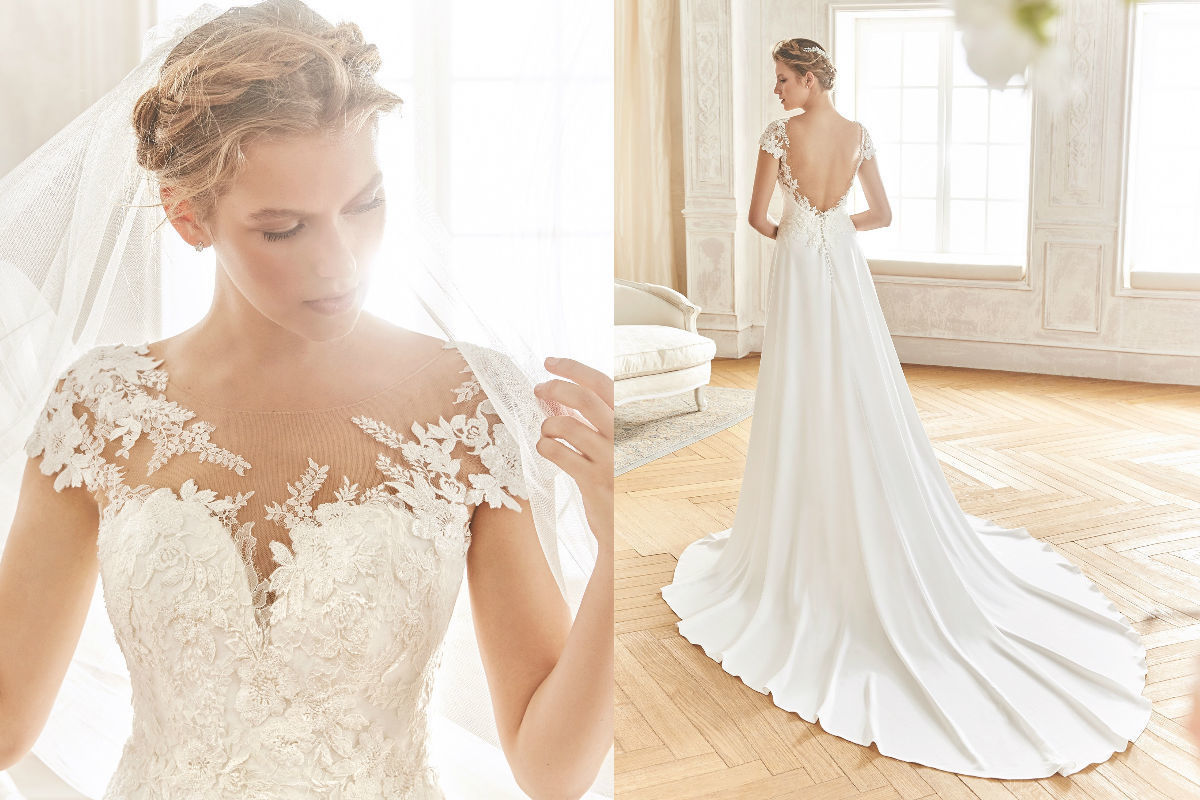 A doçura personificada. Um vestido de noiva de ar romântico com um acentuado toque inocente, muito sensual: